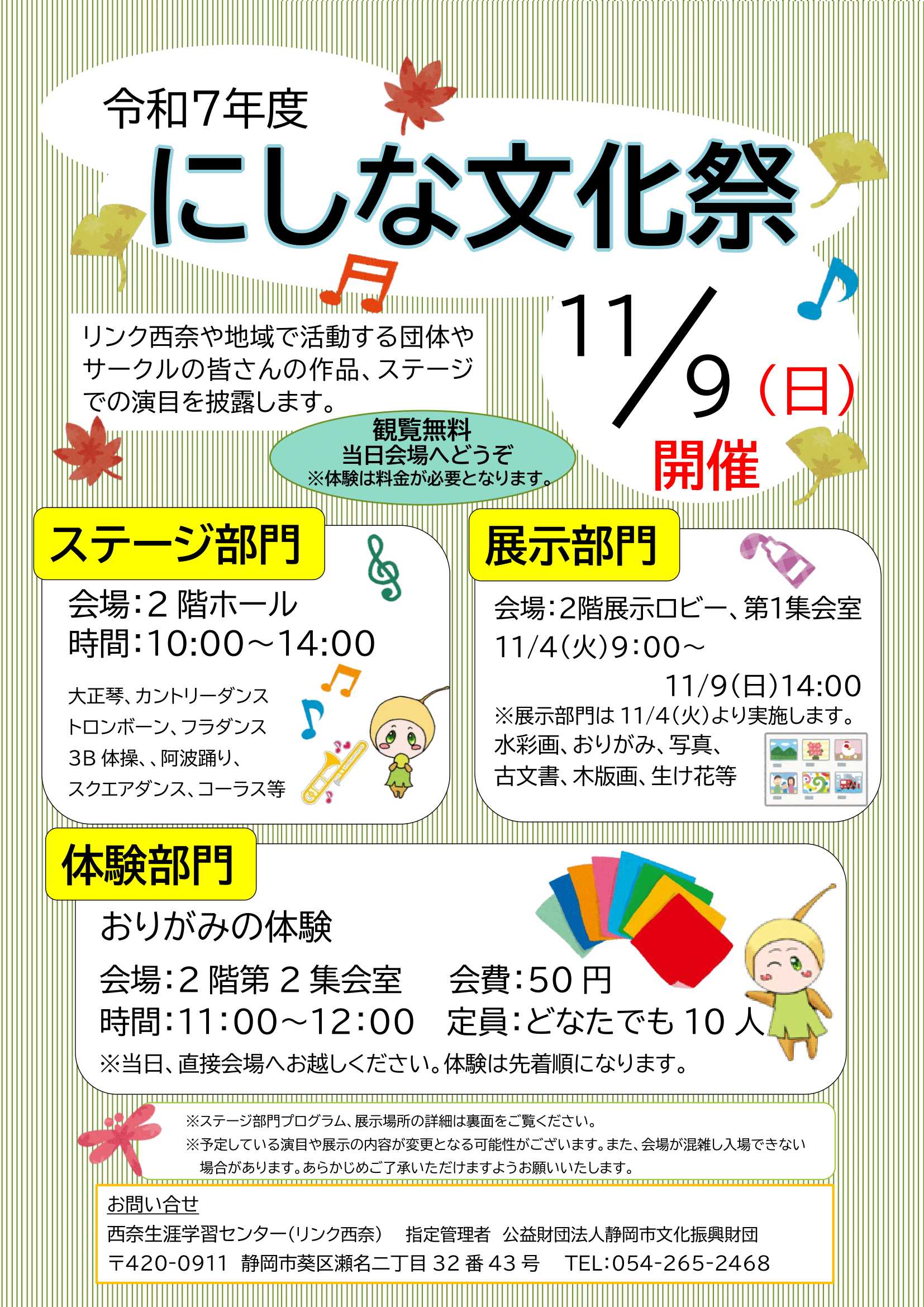 | 問い合わせ先 | 西奈生涯学習センター(リンク西奈)(電話:054-265-2468) |