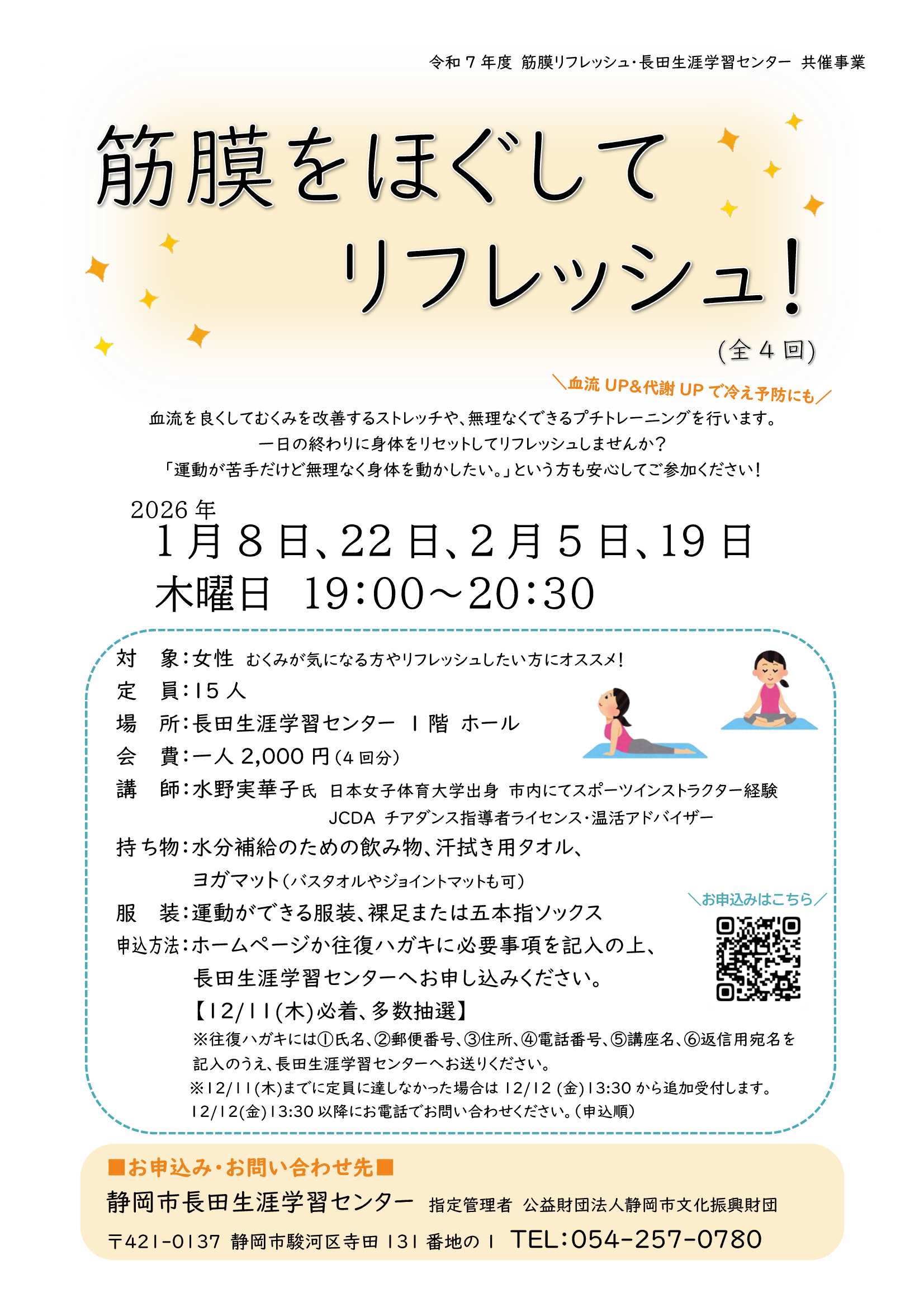 | 問い合わせ先 | 長田生涯学習センター(電話:054-257-0780) |