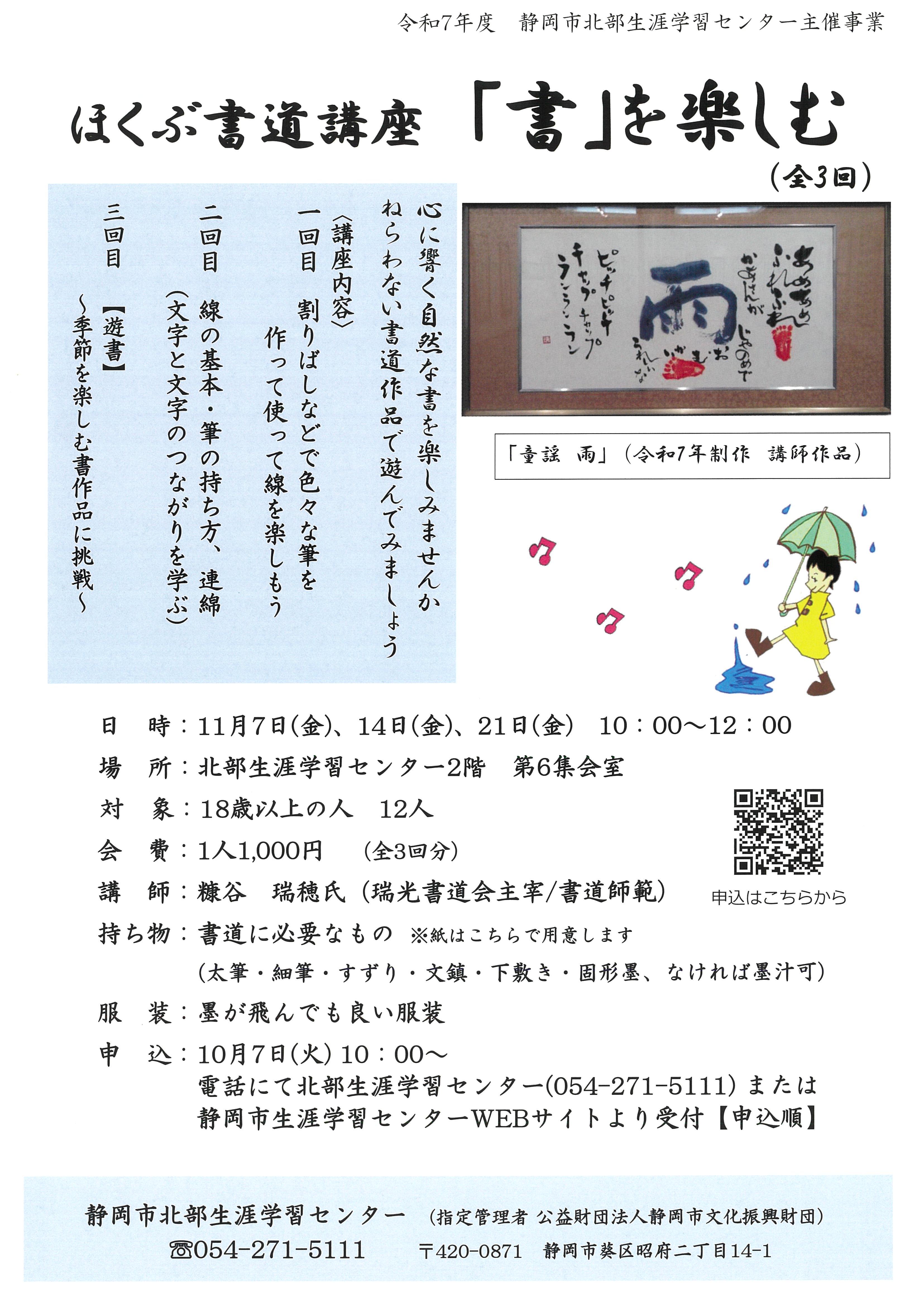 問い合わせ先 | 北部生涯学習センター(電話:054-271-5111) |