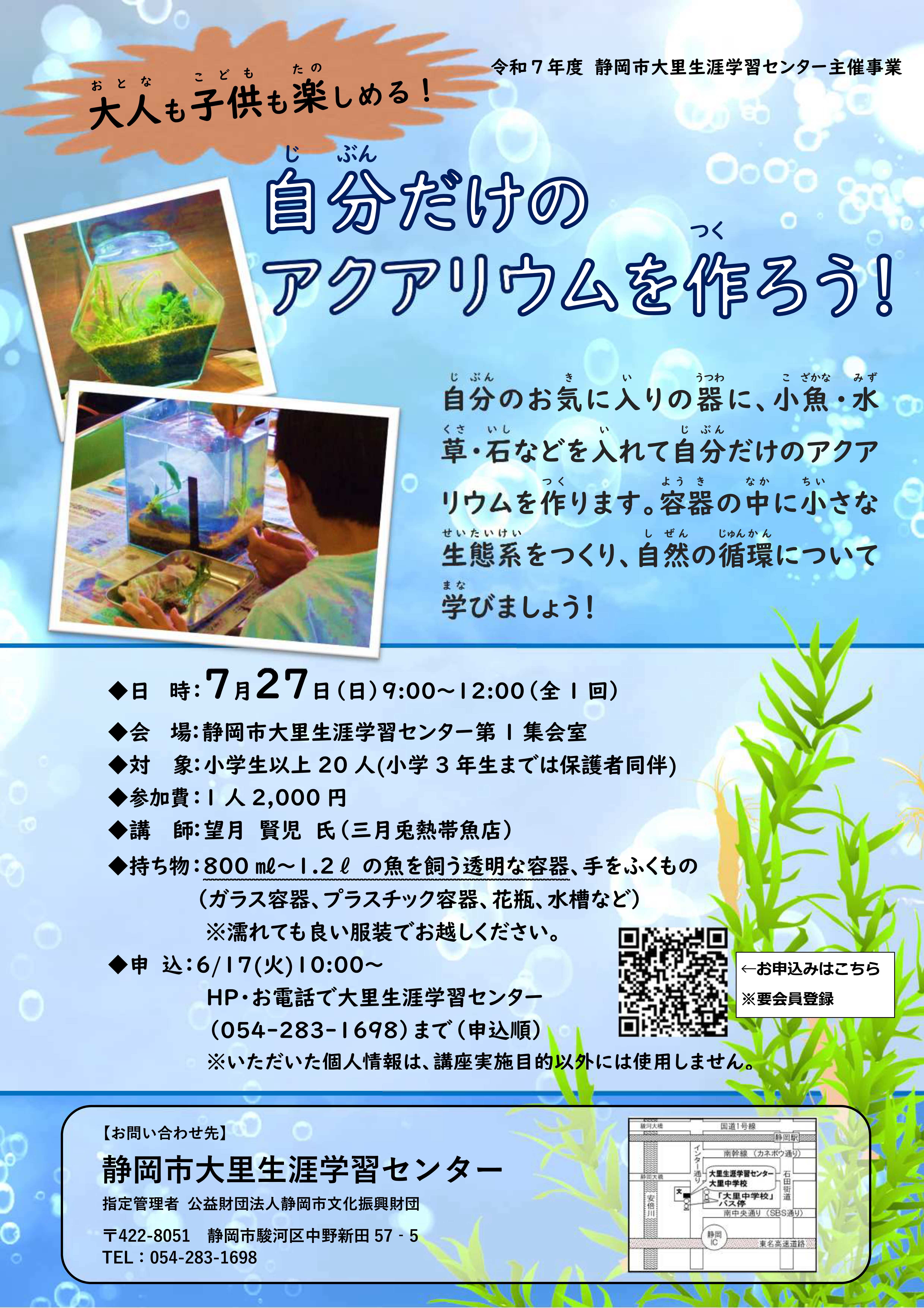 | 問い合わせ先 | 大里生涯学習センター(電話:054-283-1698) |
