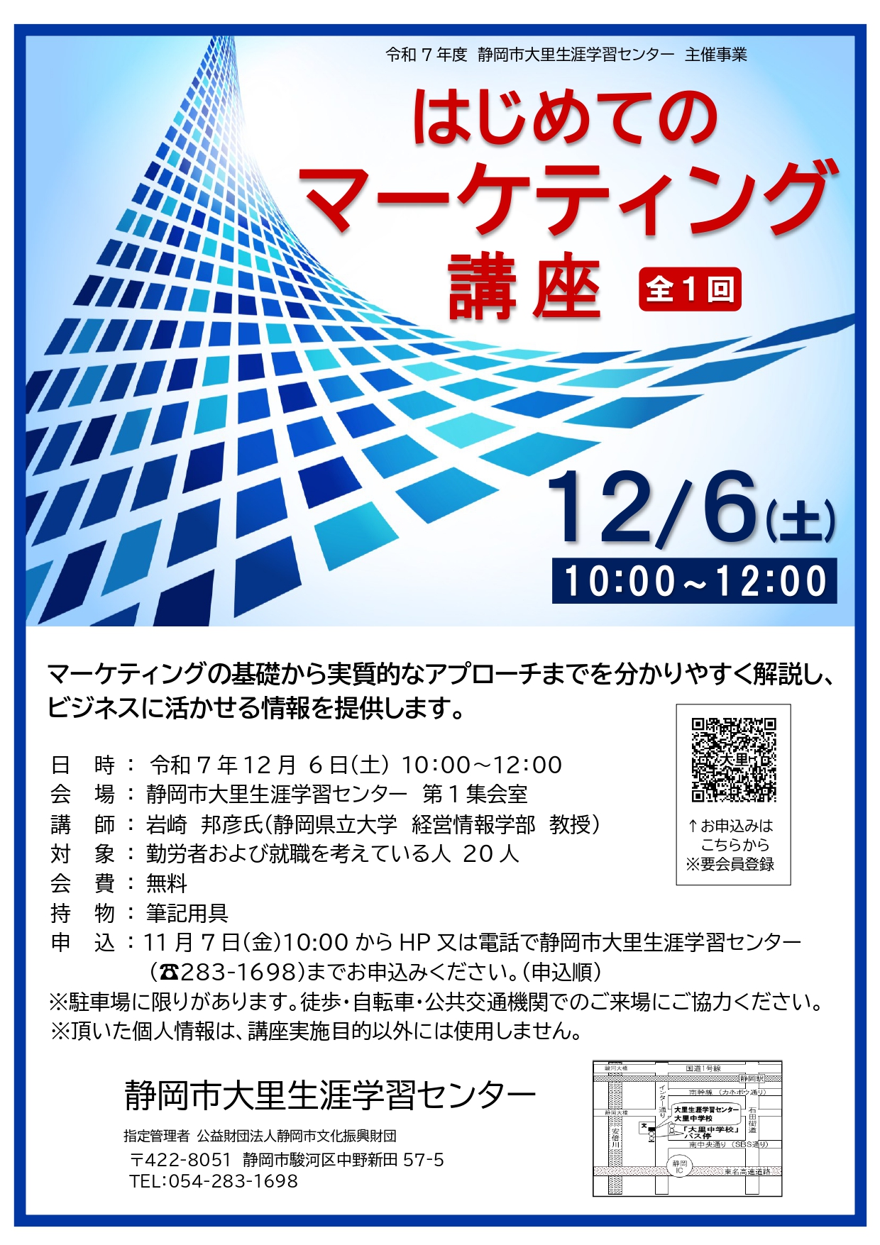 | 問い合わせ先 | 大里生涯学習センター(電話:054-283-1698) |