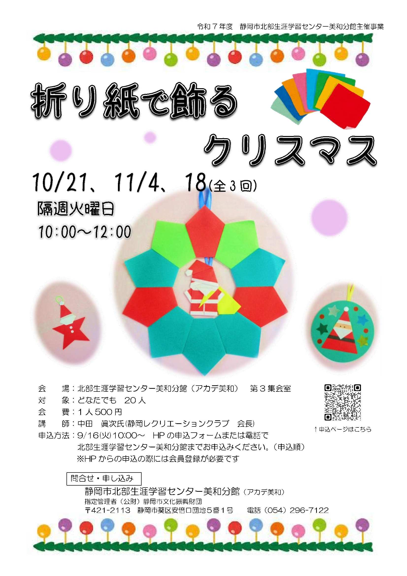 問い合わせ先 | 北部生涯学習センター美和分館(電話:054-296-7122) |