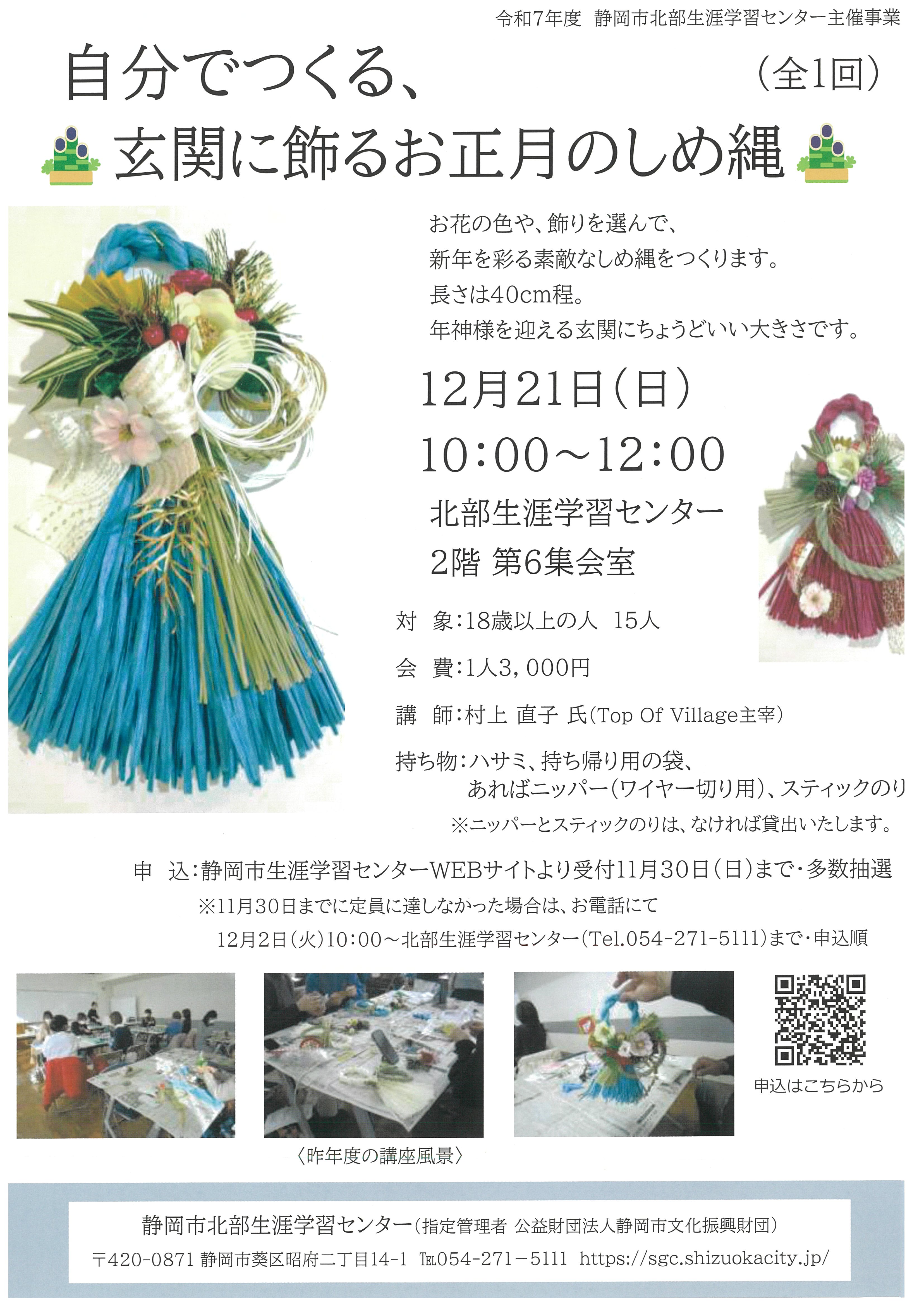 お花の色や、飾りを選んで、新年を彩る素敵なしめ縄をつくります。