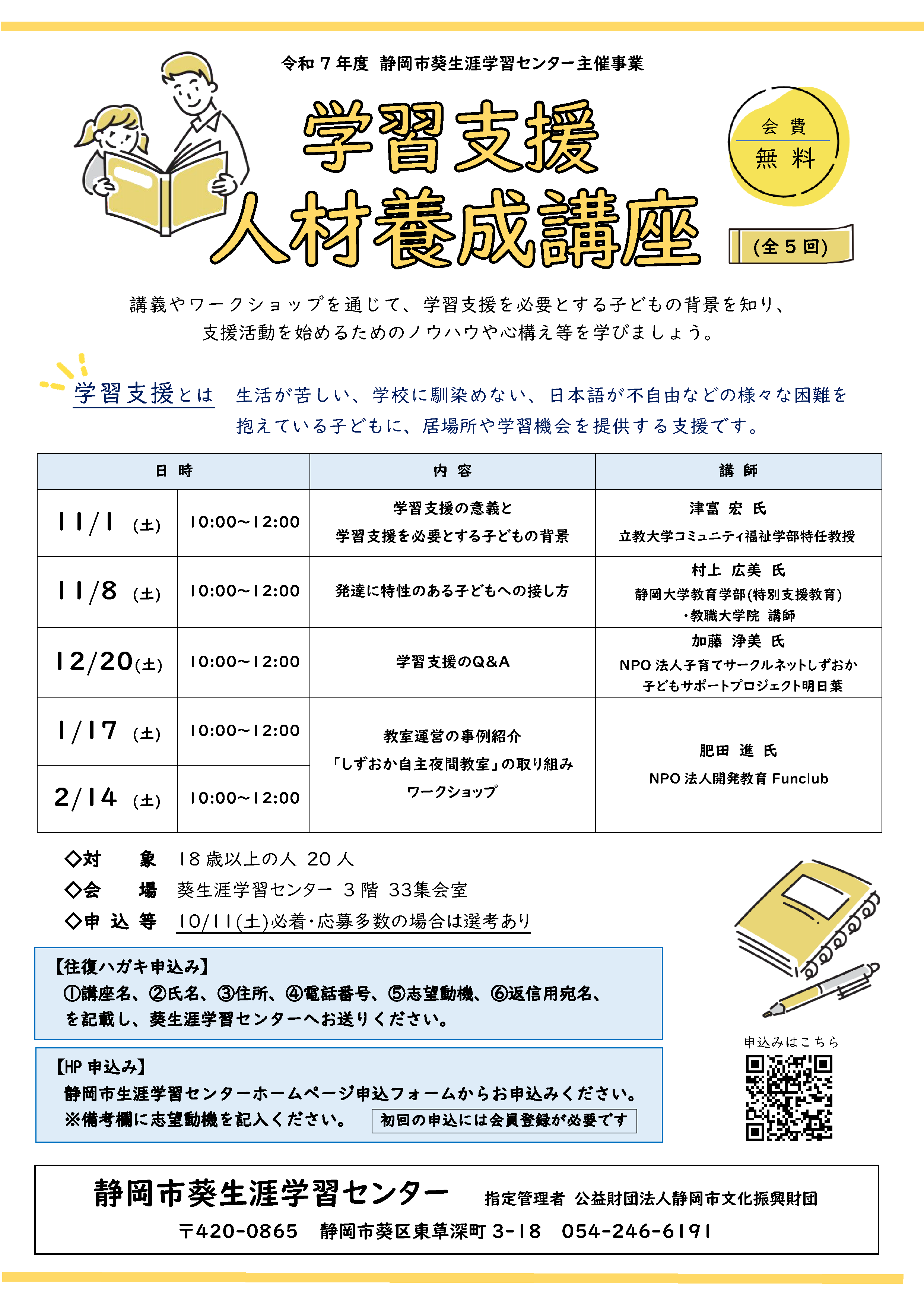 | 問い合わせ先 | 葵生涯学習センター(電話:054-246-6191) |