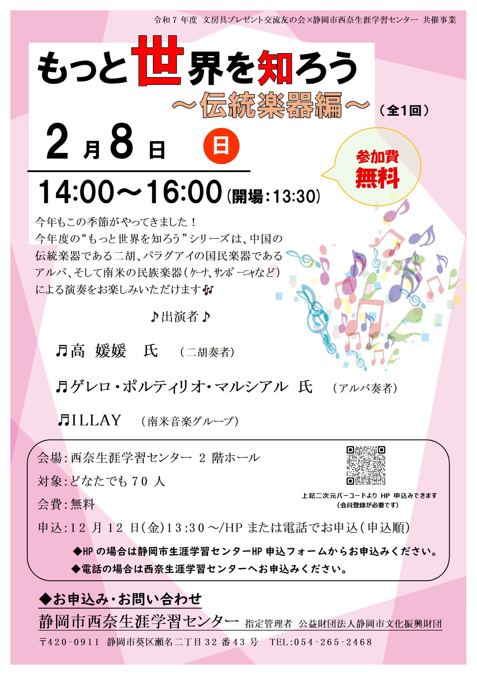 | 問い合わせ先 | 西奈生涯学習センター(リンク西奈)(電話:054-265-2468) |