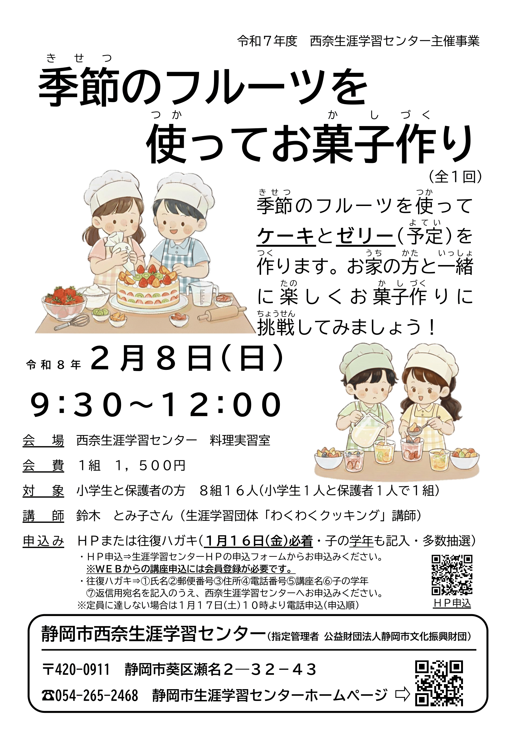 | 問い合わせ先 | 西奈生涯学習センター(リンク西奈)(電話:054-265-2468) |