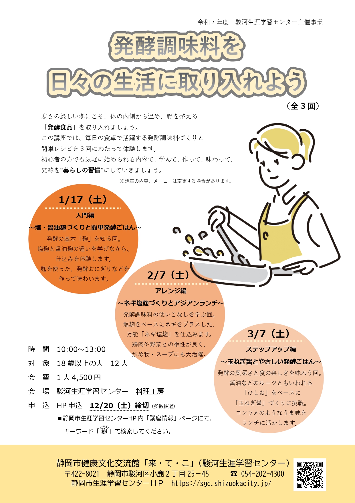 HP申込[12/20(土)〆切、多数抽選]定員に達しない場合は12/22(月)10:00~より電話受付(申込順) ※WEBからの講座申込には会員登録が必要です |