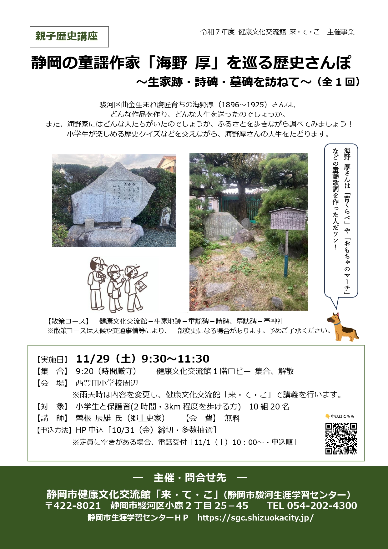親子歴史講座 静岡の童謡作家「海野 厚」を巡る歴史さんぽ~生家跡・詩碑・墓碑を訪ねて~