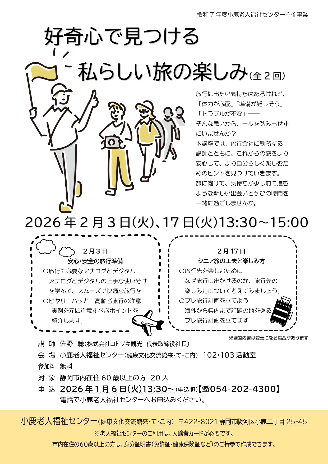 | 問い合わせ先 | 小鹿老人福祉センター(電話:054-202-4300) |