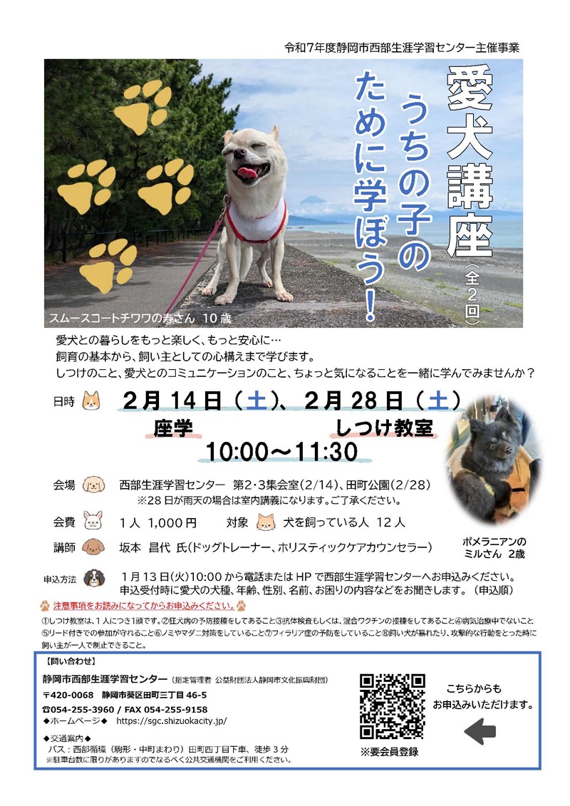 | 問い合わせ先 | 西部生涯学習センター(電話:054-255-3960) |