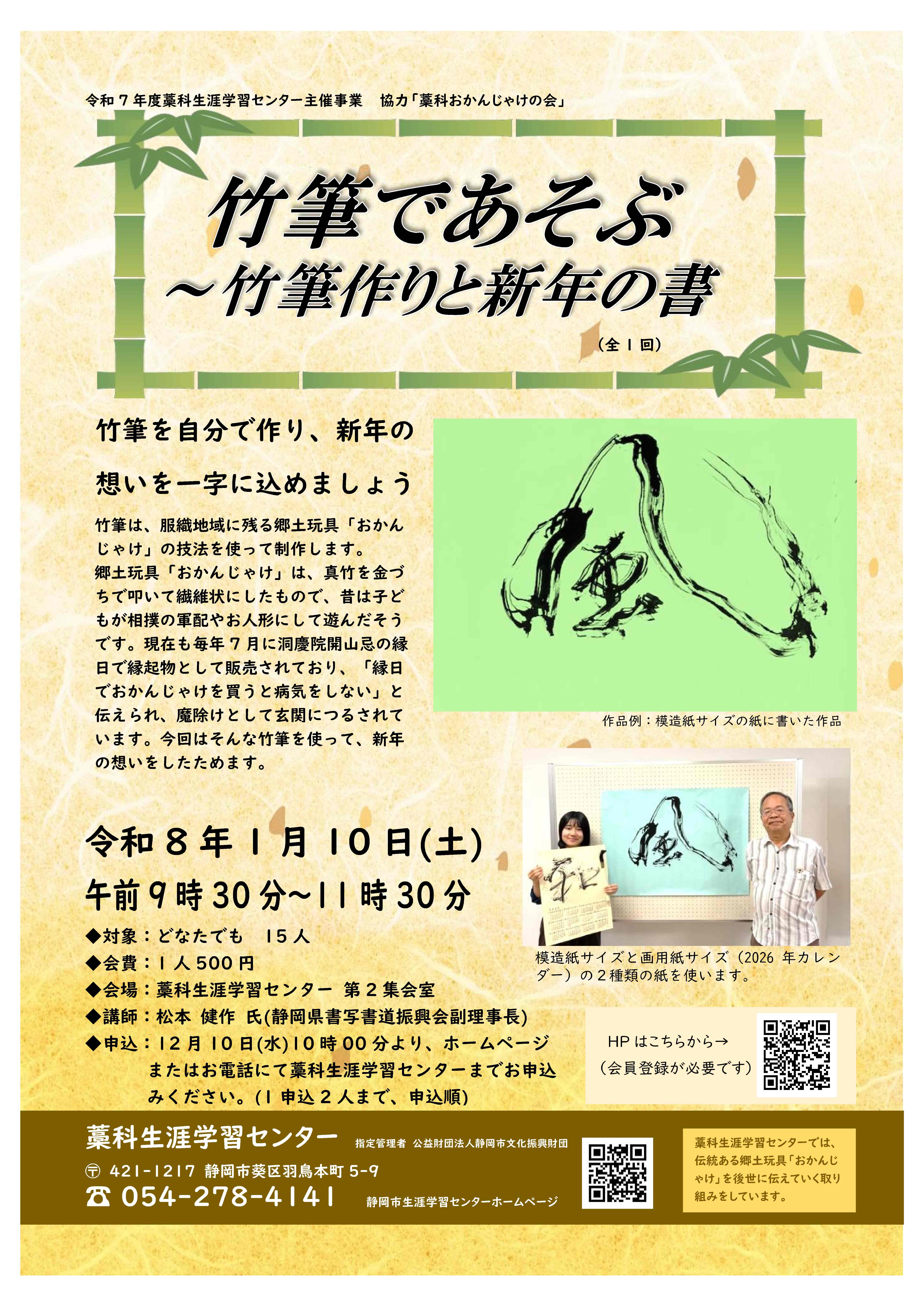 | 問い合わせ先 | 藁科生涯学習センター(電話:054-278-4141) |
