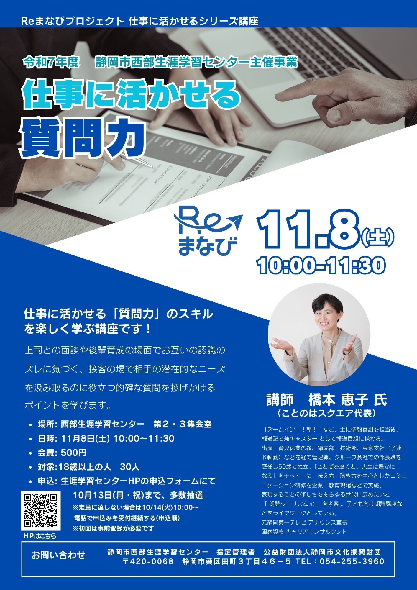 問い合わせ先 | 西部生涯学習センター(電話:054-255-3960) |