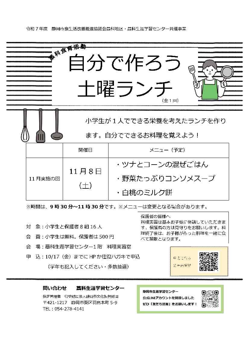 藁科食育活動 自分で作ろう土曜ランチ 11月
