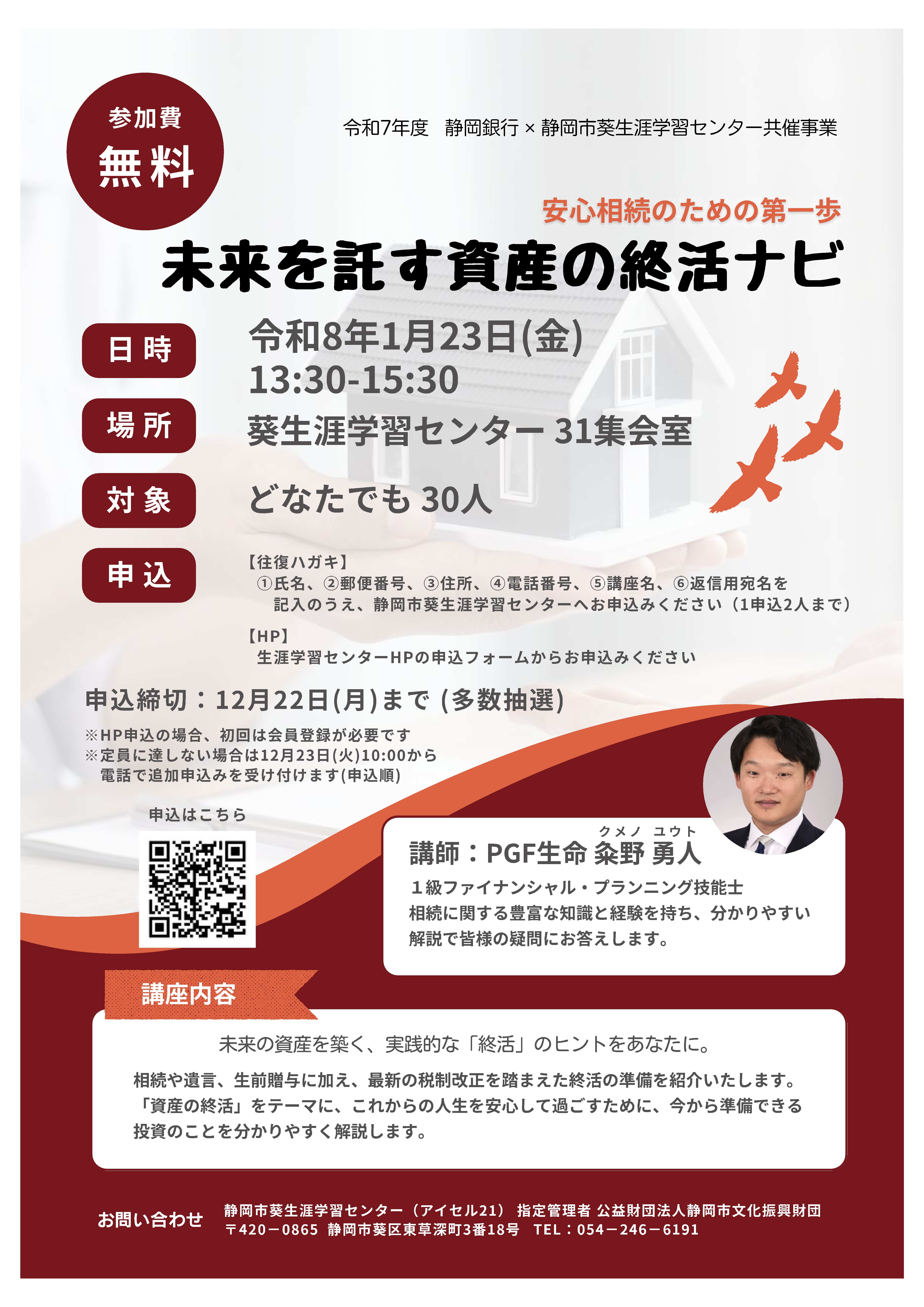 問い合わせ先 | 葵生涯学習センター(電話:054-246-6191) |