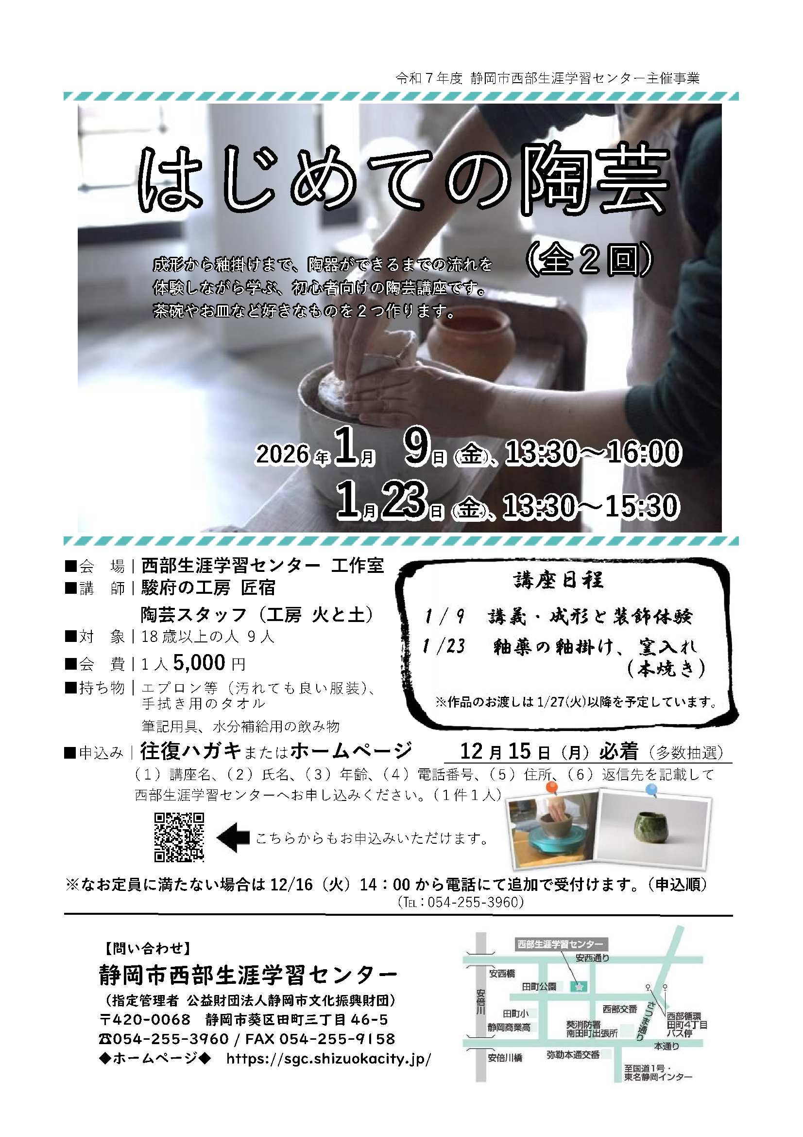 | 問い合わせ先 | 西部生涯学習センター(電話:054-255-3960) |