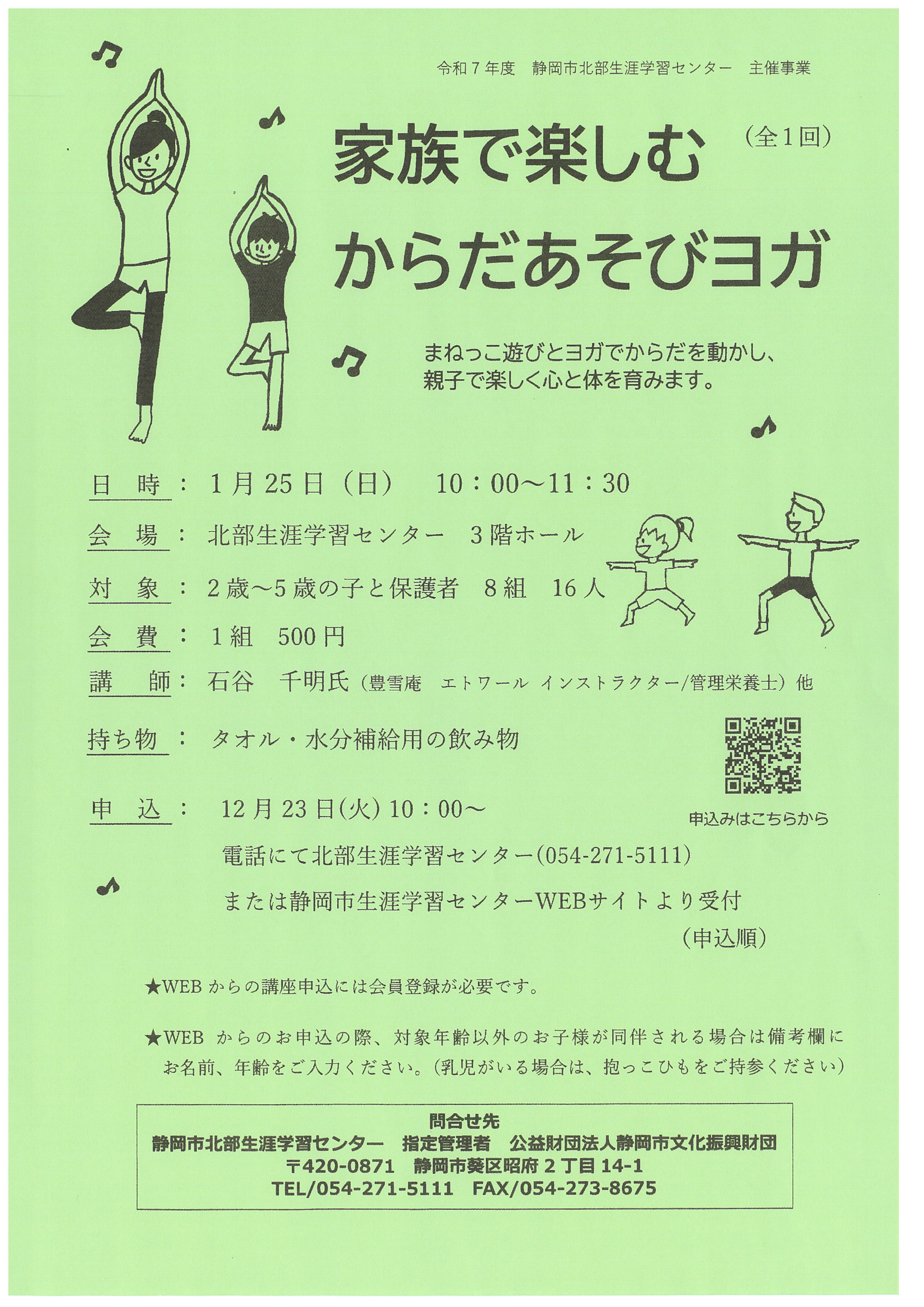 まねっこ遊びとヨガでからだを動かし、親子で楽しく心と体を育みます。