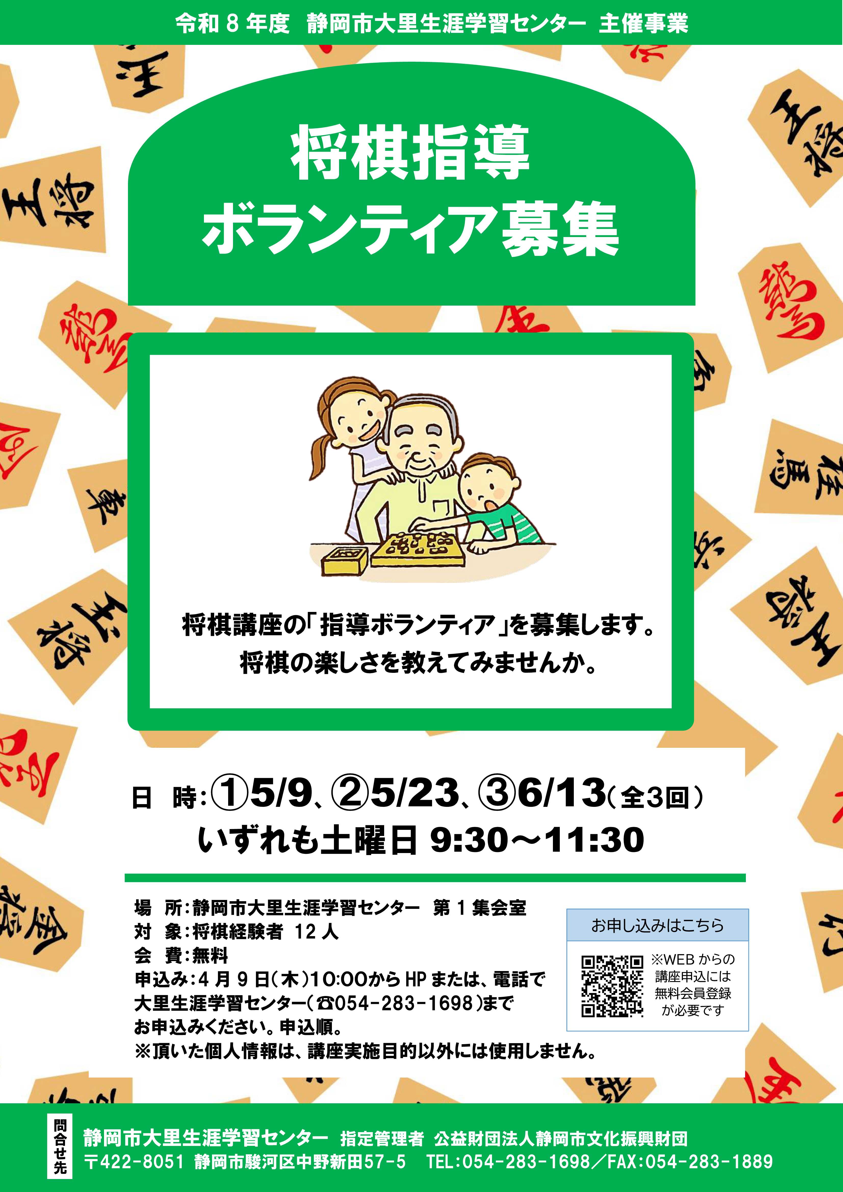 | 問い合わせ先 | 大里生涯学習センター(電話:054-283-1698) |