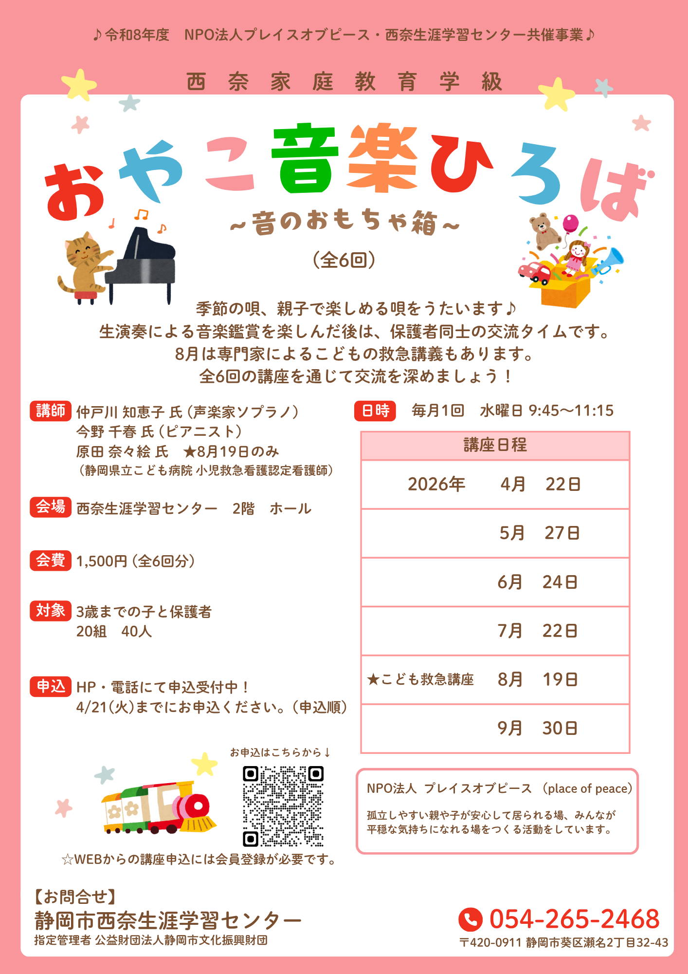 | 問い合わせ先 | 西奈生涯学習センター(電話:054-265-2468) |