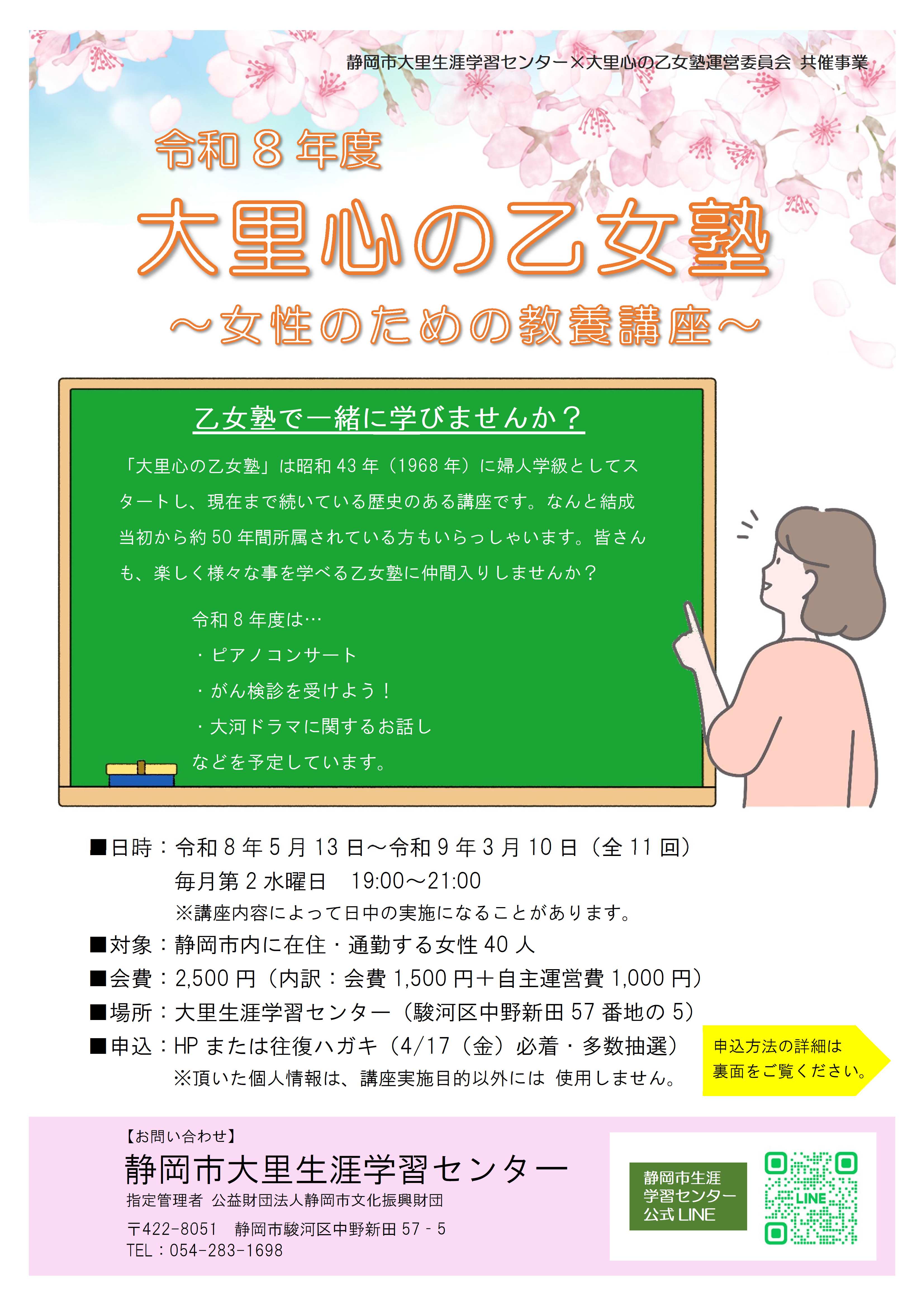 | 問い合わせ先 | 大里生涯学習センター(電話:054-283-1698) |