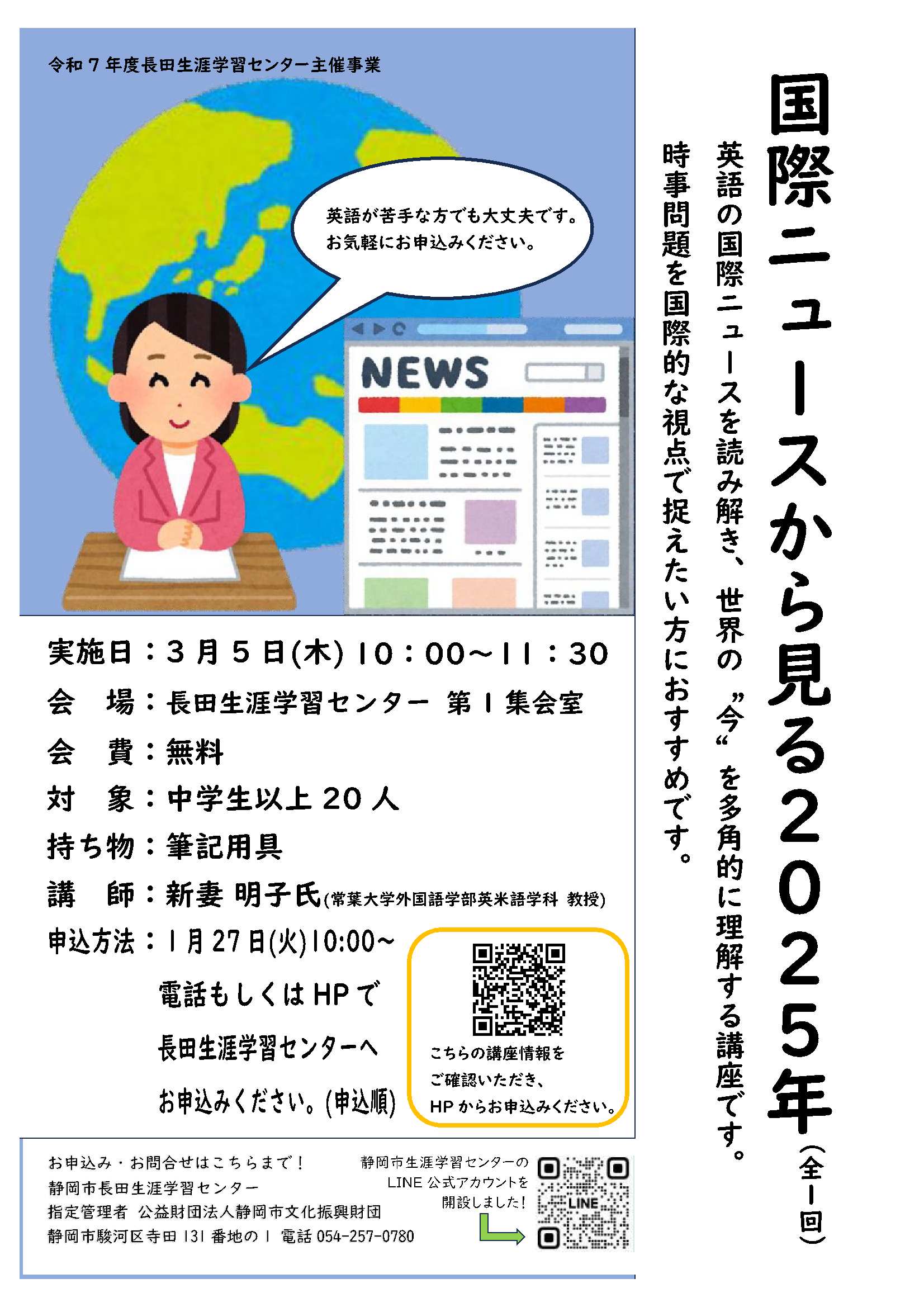 | 問い合わせ先 | 長田生涯学習センター(電話:054-257-0780) |