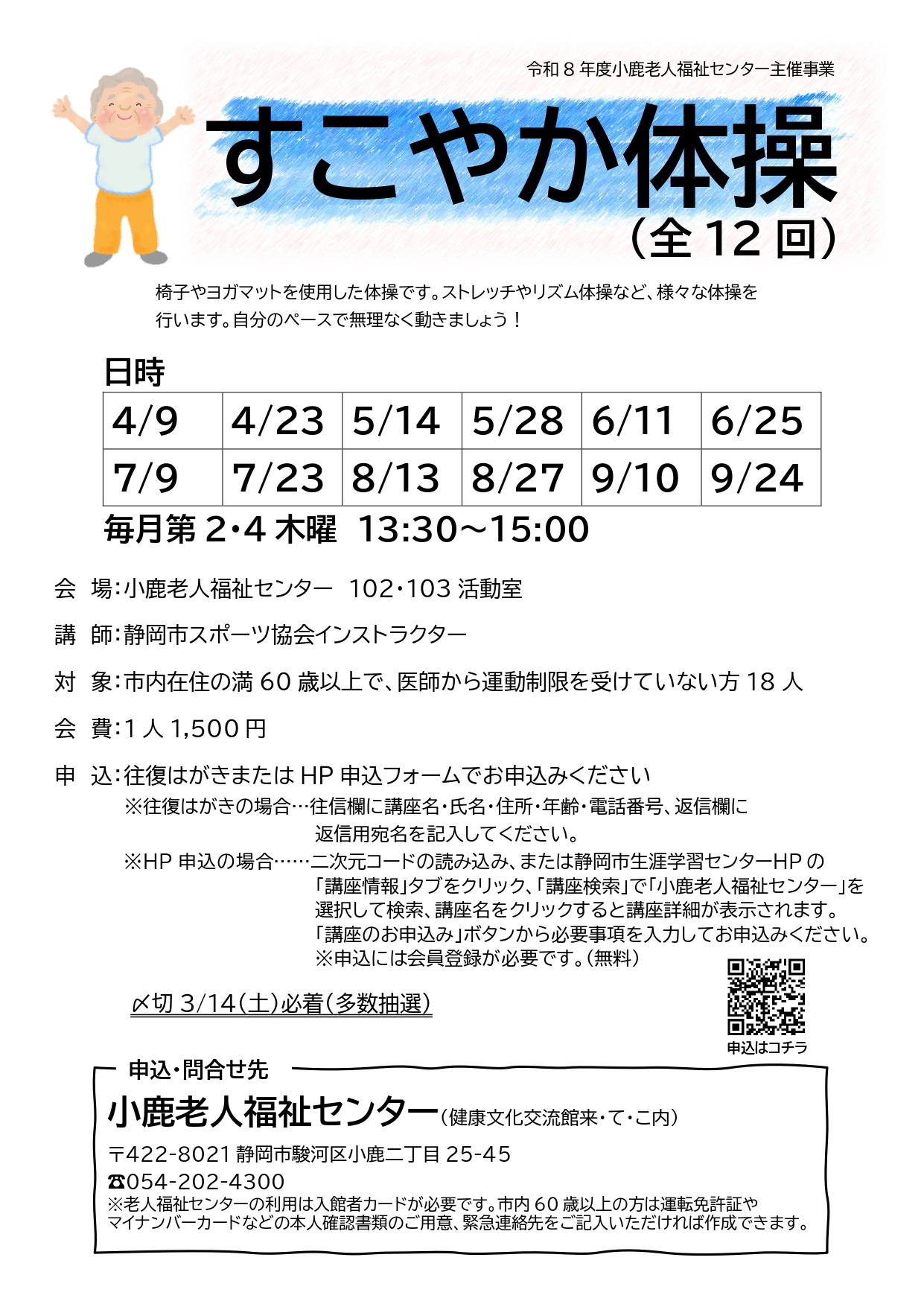 | 問い合わせ先 | 小鹿老人福祉センター(電話:054-202-4300) |