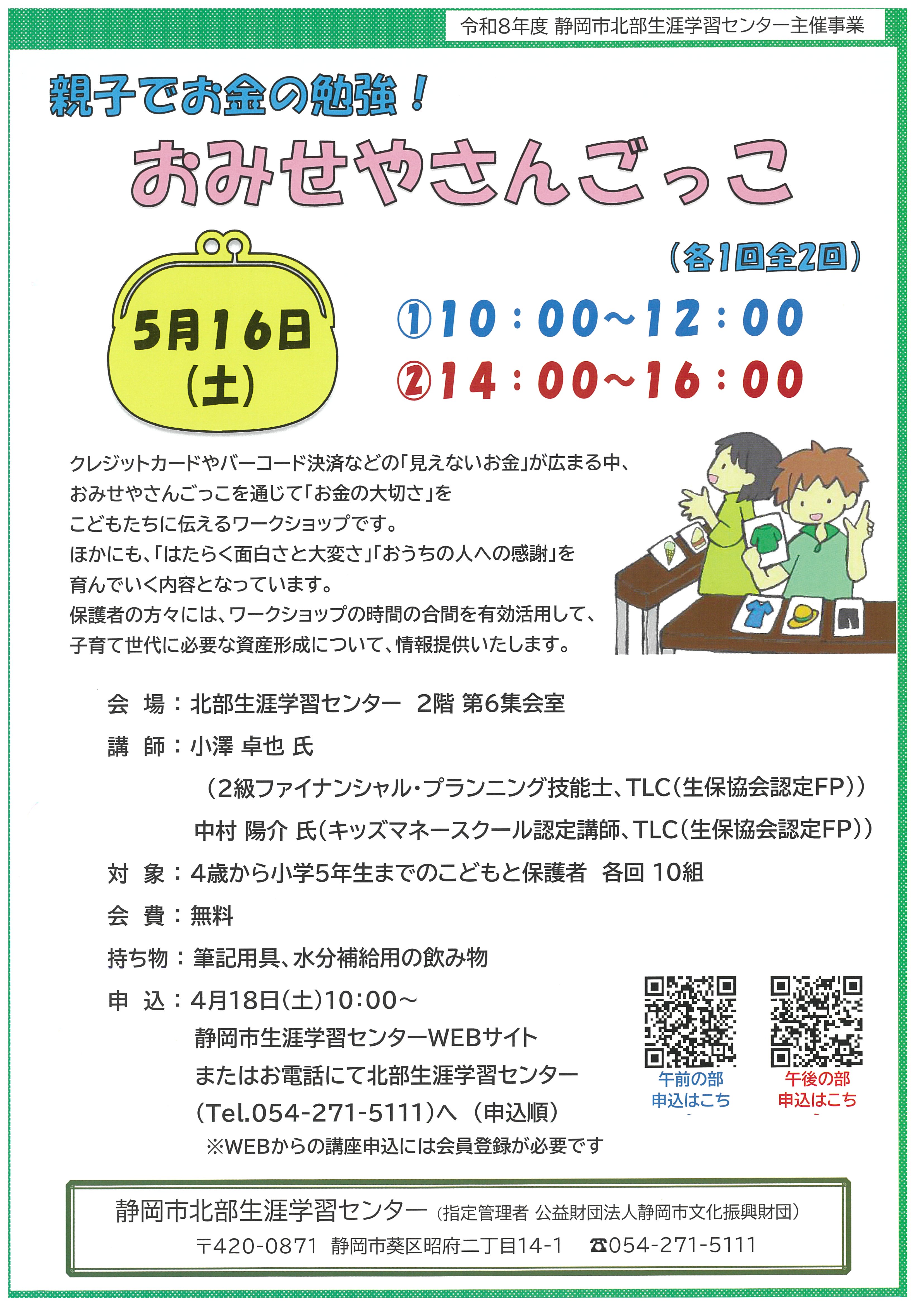 キッズ・マネー・スクール「親子でお金の勉強!おみせやさんごっこ」を行います。