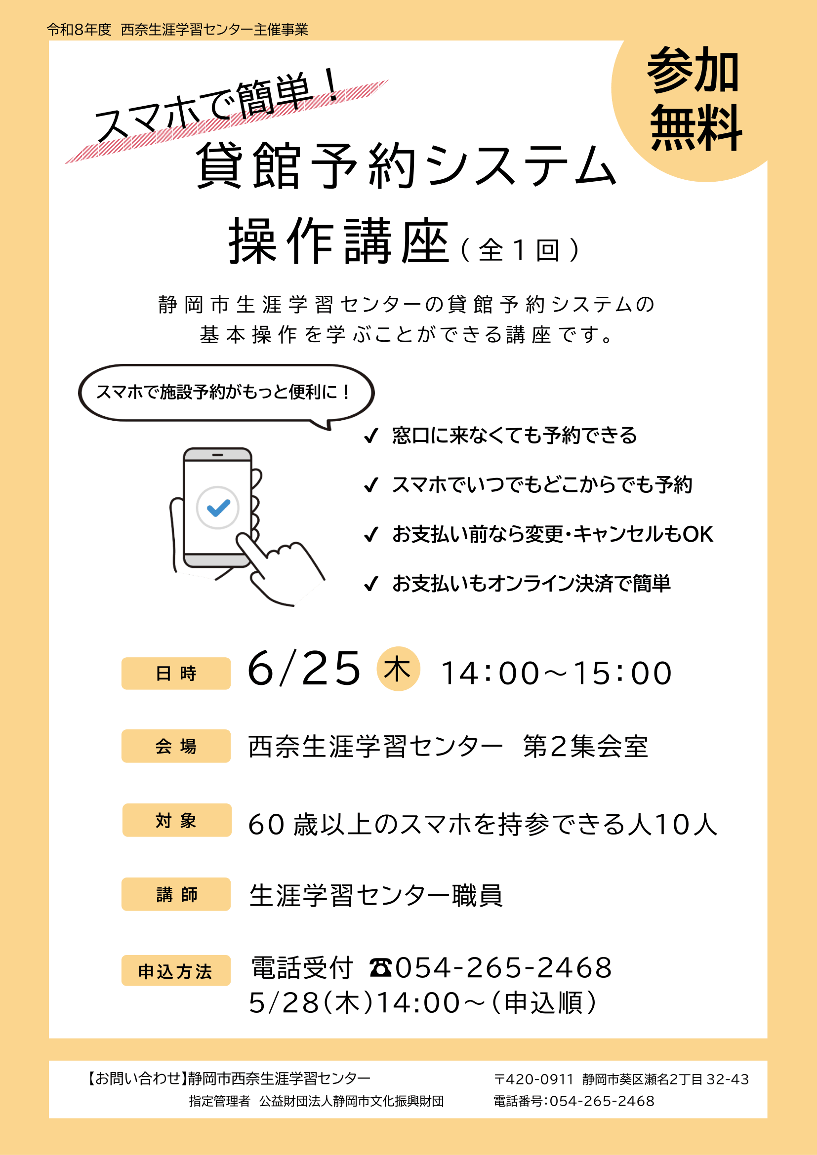電話[5/28(木)、14:00~・申込順] 2026/05/28から受付開始します |