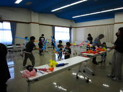こちらはウサギと比べて工程も少ないため、慣れた子は何本も作っていました。細長いバルーンを腰に巻いて即席のベルトにし、そこへ剣を差せば、ちいさな剣豪の誕生です。